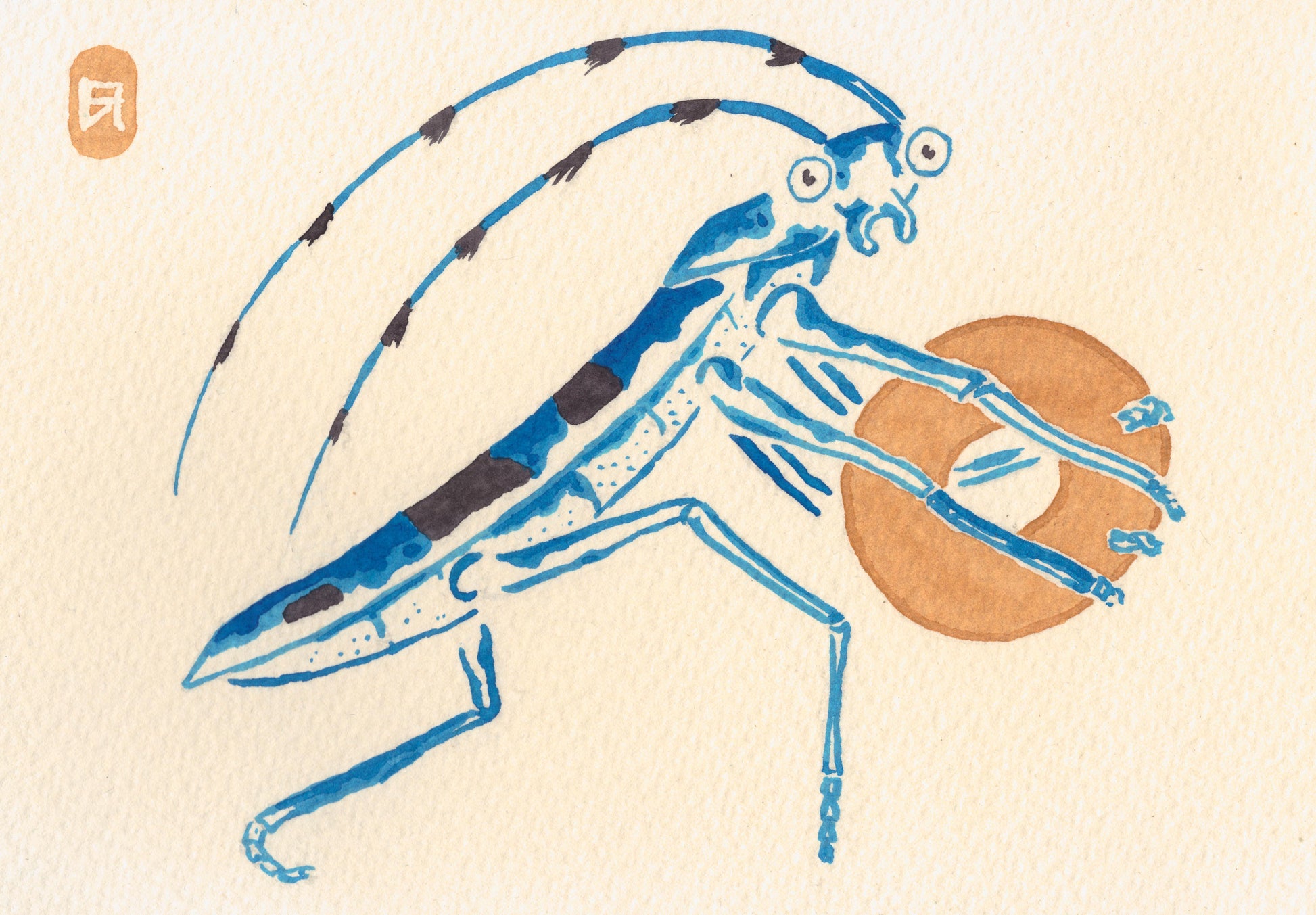 Aquarelle. Sujet original inspiré de la peinture japonaise du 19e siècle.